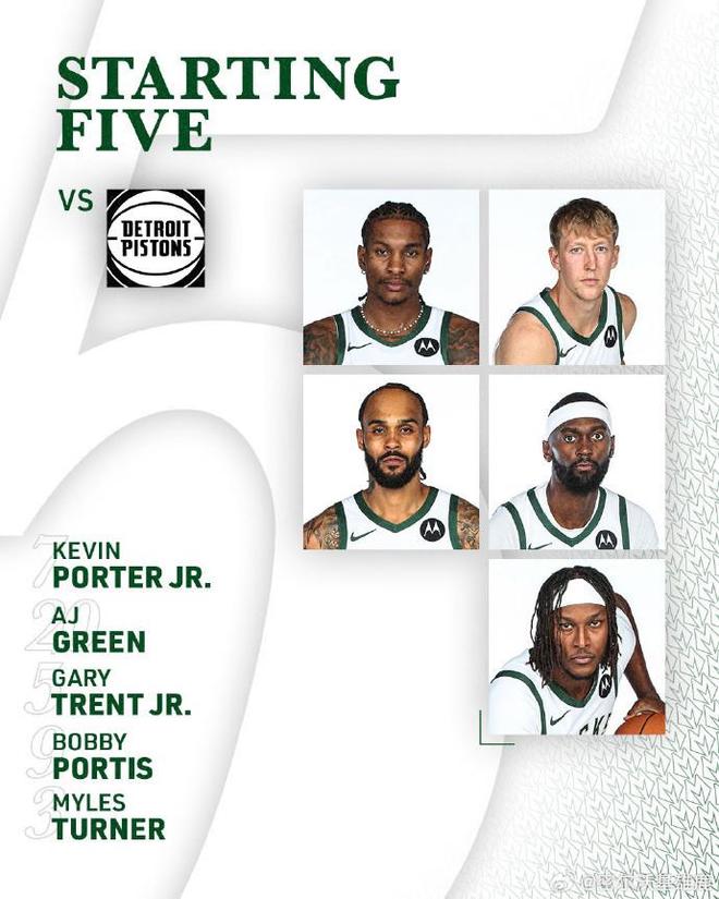 雄鹿:字母哥与库兹马缺席,格林格林三分5中5与罚球7中7得到22分,波蒂斯11分,波特4中4得到10分。